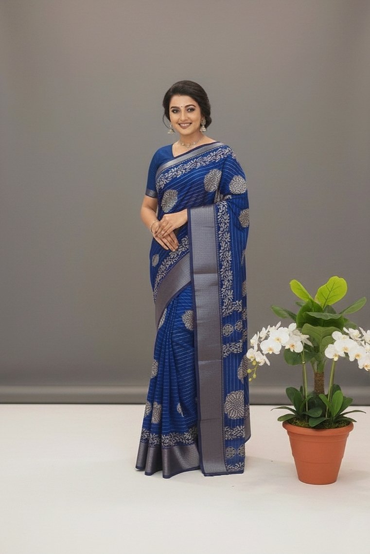 the saree a very festive, traditional, and regal look, making it suitable for weddings, parties, and