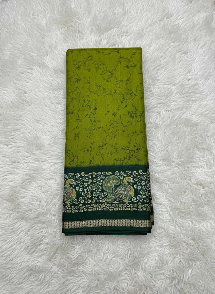 ▪Border & Pallu has printed kalamkari Elephant motifs and floral patterns.
